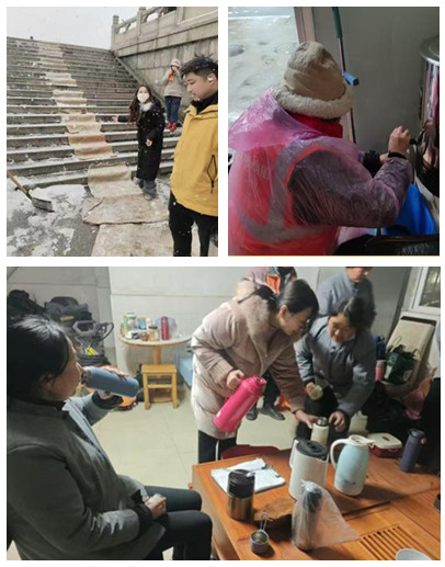 在一線保潔員冒雪奮戰(zhàn)的同時(shí),江城清洗各項(xiàng)目管理團(tuán)隊(duì)同步啟動(dòng)后方保障工作,提前熬制好紅糖姜茶、準(zhǔn)備好溫?zé)岬娘嬘盟?,送到各作業(yè)區(qū)域人員手中,為寒風(fēng)中的保潔員驅(qū)散嚴(yán)寒,讓他們?cè)趫?jiān)守崗位的同時(shí),感受到堅(jiān)實(shí)的后盾與溫暖。